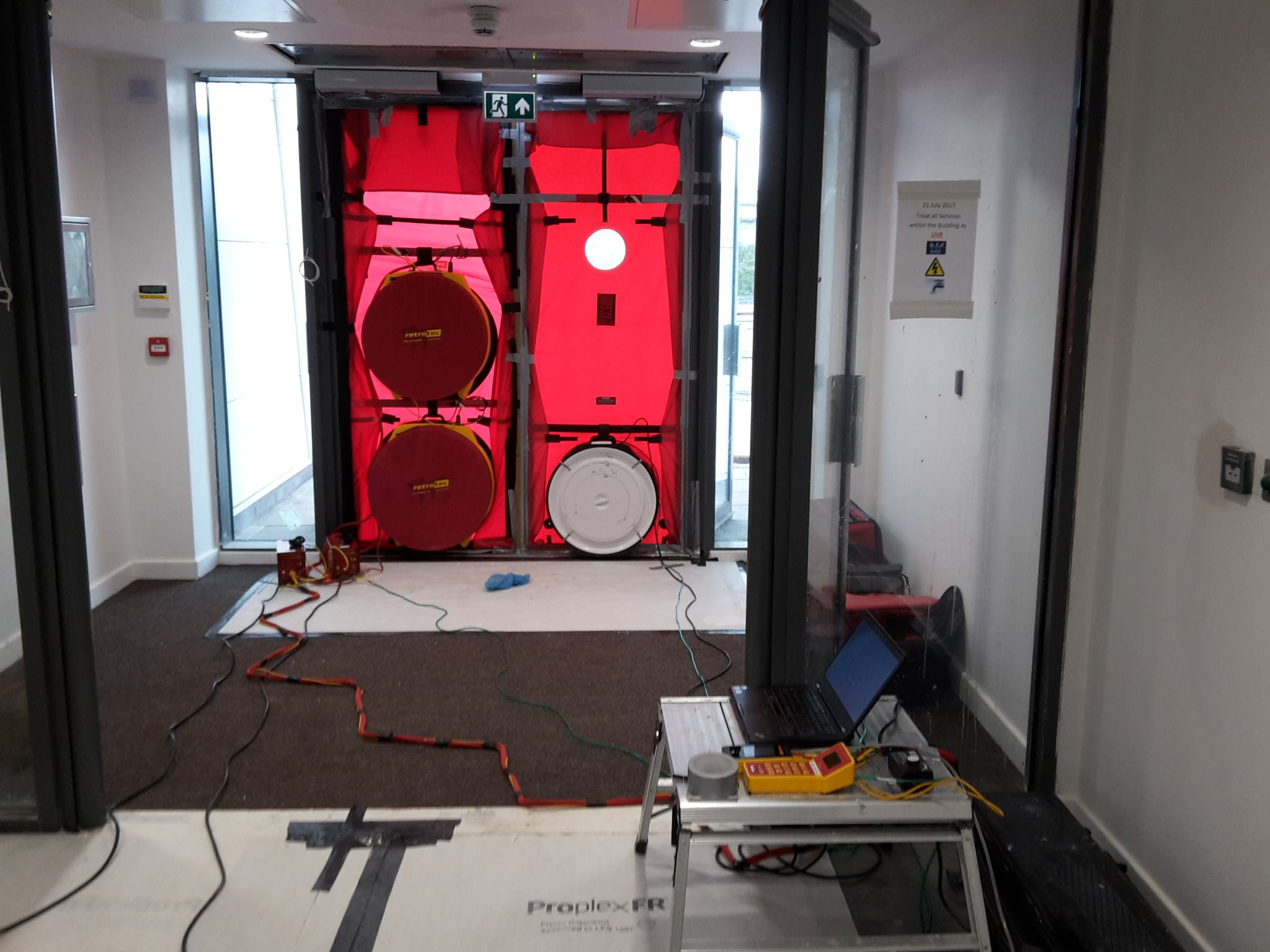Most houses can be tested by a single door fan but larger non-domestic buildings often need multiple fans to flow sufficient air through them to generate sufficient test pressures.