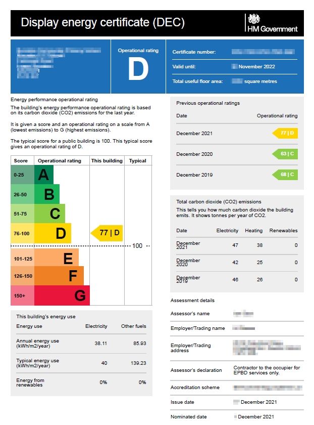 Only producing DECs once every 10 years is widely considered to be insufficient as their greatest value comes from demonstrating the change (hopefully improvement) in energy efficiency year-on-year. For this reason, occupiers who are significant energy users are strongly encouraged to renew their DECs annually, even if the building is below 1,000m² useful floor area.